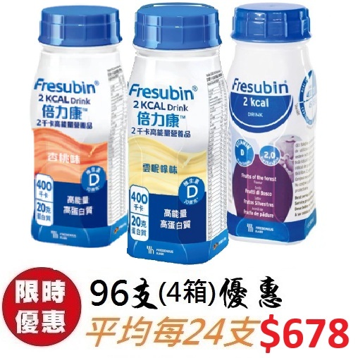- 高能量密度 (2千卡/毫升):每支200毫升,可提供400千卡。足夠滿足病人的額外能量需求,從而改善病人的健康成效。